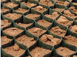 土工網(wǎng)墊護(hù)坡技術(shù)綜合了土工網(wǎng)和植物護(hù)坡的優(yōu)點(diǎn),起到了復(fù)合護(hù)坡的作用。邊坡的植被覆蓋率達(dá)到30%以上時(shí),能承受小雨的沖刷,覆蓋率達(dá)80%以上時(shí)能承受暴雨的沖刷。待植物生長茂盛時(shí),能抵抗沖刷的徑流流速達(dá)6m/s,為一般草皮的2倍多。土工網(wǎng)的存在,對減少邊坡土壤的水分蒸發(fā),增加入滲量有良好的作用。同時(shí),由于土工網(wǎng)材料為黑色的聚乙烯,具有吸熱保溫的作用,可促進(jìn)種子發(fā)芽,有利于植物生長。